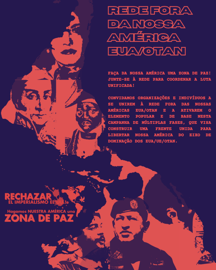 Convidamos organizações e indivíduos a SE JUNTAREM à Rede Fora EUA/OTAN da Nossa América e a ativarem o elemento de movimento popular nesta campanha multifásica que visa construir uma frente unida de oposição para libertar nossa América do Eixo de Dominação dos EUA/UE/OTAN.